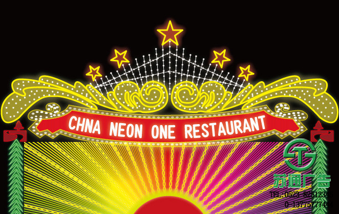 戶外廣告的主要形式之一,為夜色增加色彩與美感。裝飾霓虹燈的時候要注意是否與周圍環境協調,安裝后也需要做定期維護保養。