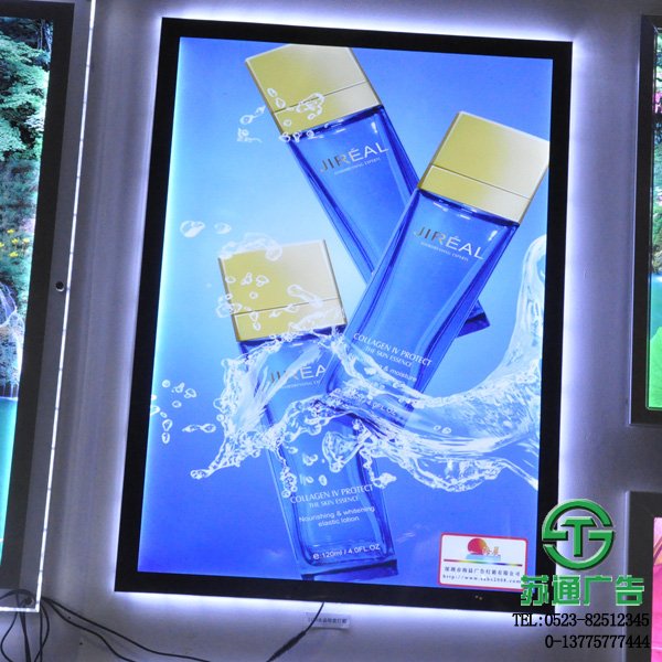 超簿燈箱亦稱側光源導光板超薄燈箱或背光源節能燈箱,是將光導技術與數碼印刷和雕刻技術相結合的高科技燈箱產品,使用普通T4/T5熒光燈管、LED燈條或EEFL無極節能燈管等作為光源,并采用多種多樣的外框材料制作而成的一種多功能新型燈箱,用220伏市電或者通過用12伏變壓器接通220伏市電,從而達到發光效果的視覺表現物體。