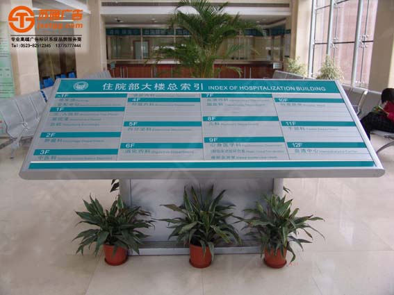 它應(yīng)用于商業(yè),醫(yī)院,小區(qū)或公園景區(qū)等等,例如商場(chǎng)一樓的購物索引圖、醫(yī)院大廳索引圖或平面圖都可以采用斜面落地標(biāo)識(shí)牌。